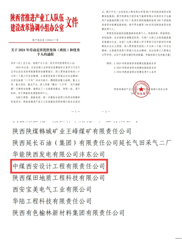 近日,公司荣获“2024年陕西省劳动竞赛优胜集体”荣誉称号。